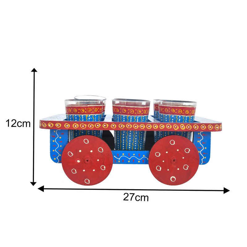 HandPainted Alluminium Tea Kettle with 6 Glasses and Wooden Tray For Home Décor , Tea Party , Serving